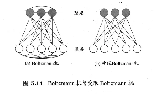 - 仅保留显层与隐层之间的连接,从而将Boltzmann机结构简化为二部图